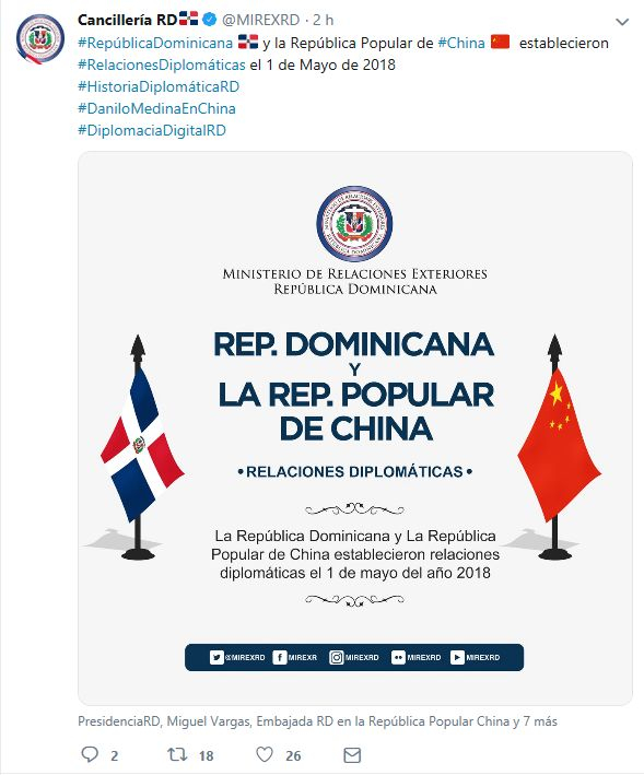 多米尼加外交部推特账号关于国事访问宣传图帖文截图。