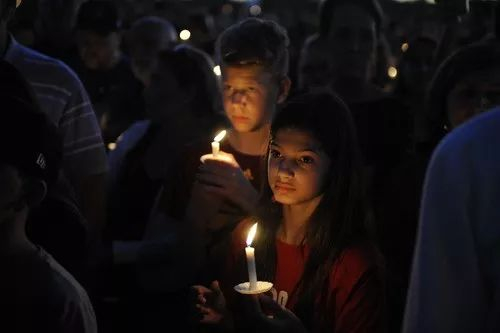 2月15日,在美国佛罗里达州帕克兰市,人们手举蜡烛参加为悼念校园枪击案遇难者举行的守夜活动。新华社记者刘阳摄