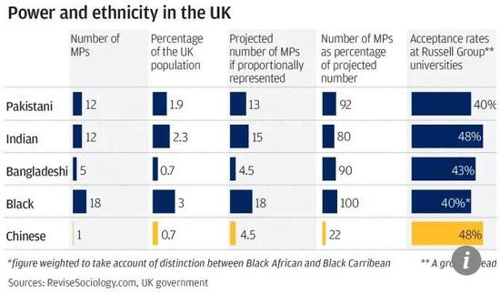 按照议会代表的比例来计算,那么正常情况下英国政界应当有四到五个华裔,但下议院仅有1名华裔,南亚裔有29人。