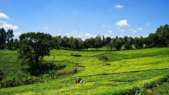 尽管当前正值肯尼亚的“小雨季”,中部加坦加地区依旧阳光明媚,蓝天白云与高低起伏的翠绿茶园一起,如同一幅美丽的油画。