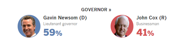 加文·纽森Gavin Newsom,51岁的民主党人,以高票成功当选加州州长!任期为4年,可连任2届。