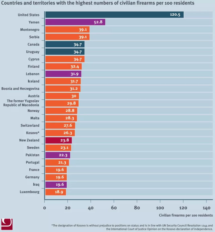 但是,对个案而言这或许能解释得通,但整体而言这无法解释美国高频率的大规模枪击案的发生。唯一的解释是,在美国可以轻易获取枪。
