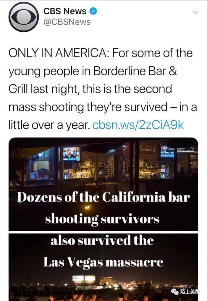 据报道,一部分这次枪击案的幸存者,也是一年前拉斯韦加斯音乐会枪击案的幸存者。一个人能不幸地遭遇两次枪击案,并且还能幸运地存活下来,这种奇事也只会发生在美国。
