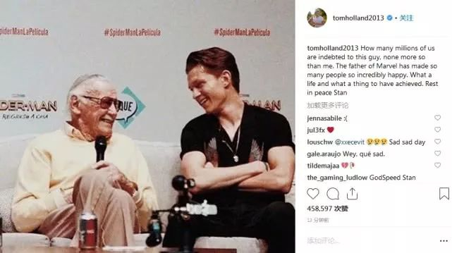 “蜘蛛侠”荷兰弟:“我们有那么多人都从他身上获益,而没有人比我更多。漫威之父给了很多人快乐,这是多么好的人生和成就啊。安息吧,斯坦。”↓↓
