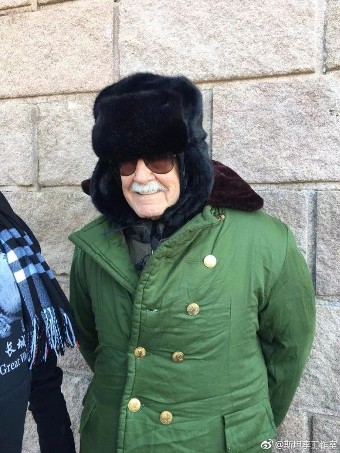 去年,老爷子94岁高龄还来中国爬长城,穿着军大衣露出尴尬而又不失礼貌的微笑。