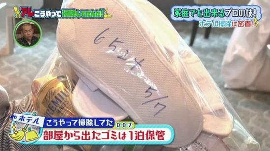 收集完房间垃圾后,不会将垃圾立即扔掉,而会在使用过的拖鞋背面写上日期与房间号,从客人退房那天起保管一天。▼