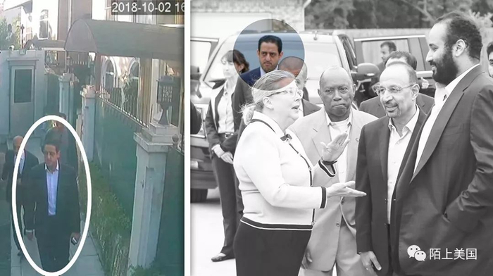 首先,根据美国中央情报局的审查,杀戮发生的那天,王储的私人保镖穆特雷布(Maher Mutreb)有进入和离开领事馆、以及在内部的通电话记录。