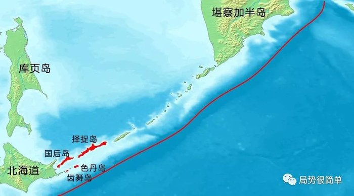二战结束的时候,日本和他的老铁朋友德国一起被世界瓜分,更具体一点说,是被美国和苏联这两个盟军的主力给瓜分了。那个时候,日本北海道更北边的四个岛就被苏联人当做战利品给掠走了。苏联解体以后四个岛到了俄罗人手里,俄罗斯人叫它们南千岛群岛,在日本叫做北方四岛。