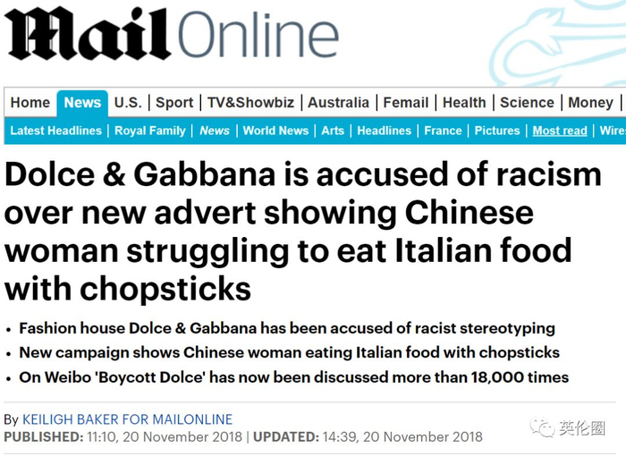 《每日邮报》:Dolce&Gabbana被指控种族歧视,广告显示了中国女性正努力用筷子吃意大利食物