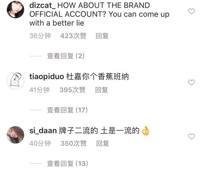 大概是D&G发现事态的严重性,设计师和官方账号在Ins上对此回应,但回应的结果是▼▼