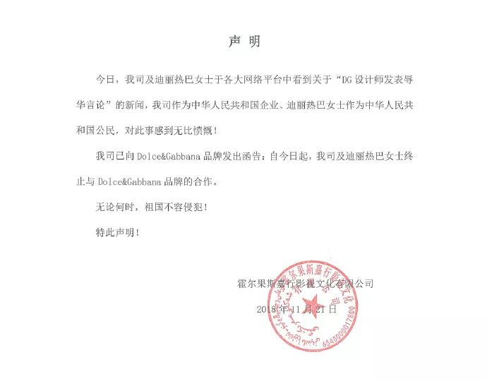 随后还在推特上跟进:@dolcegabbana表示,他们对中国只有尊重