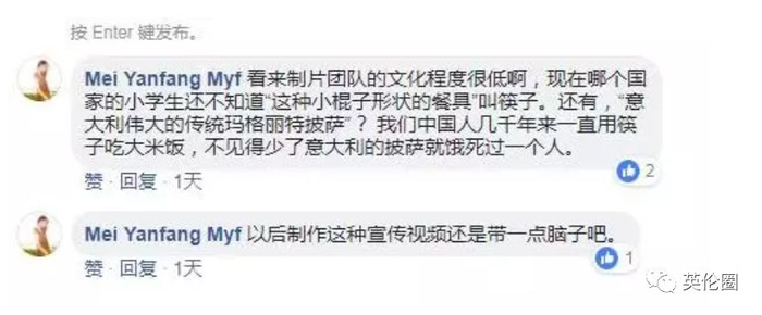 有网友认为这样的表述和模特夸张的表情,也是在歧视中国传统文化。还有海外网友指出,现在谁还叫筷子是“小棍子形状的餐具”?