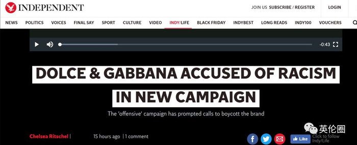 《金融时报》:Dolce&Gabbana中国的广告活动被指种族歧视