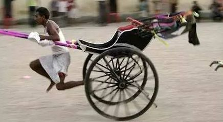 印度人力车夫多半精瘦,但能把车拉的飞快,据说是靠吃辣椒达到这种能力的。错愕之后,笔者告诉这位有原则的阶级兄弟 -- 你的原则是很好地,但我是去赶火车啊,如果你绕道,我会迟到地。