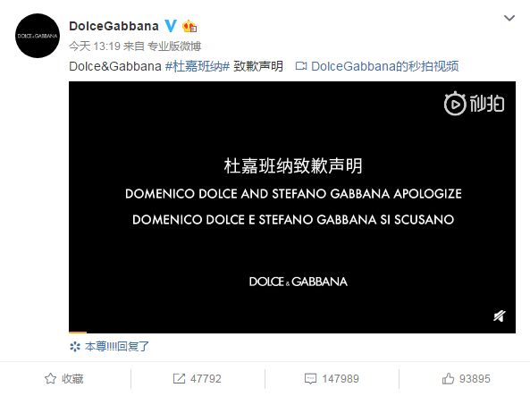 之前那什么盗号的事就忽略了哈,Dolce & Gabbana真心诚意地love and will always love 中国(的钱),以后会多多学习和尊重中国文化。(勉为其难地)对不起~