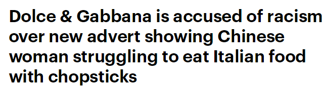 BBC:被指责有歧视行为,D&G取消了上海大秀。然后通篇都在讲“起筷吃饭”的视频。