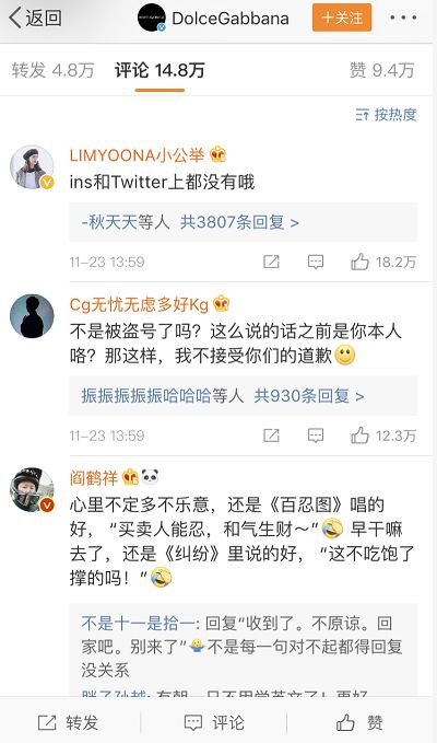 看看Dolce & Gabbana这条微博下的留言,就知道大家完全没法对这个道歉买账。