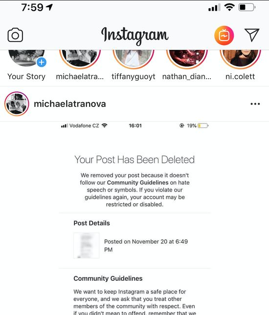 你的帖子违反了Instagram关于仇视言论的规定……请对其他用户保持尊重。