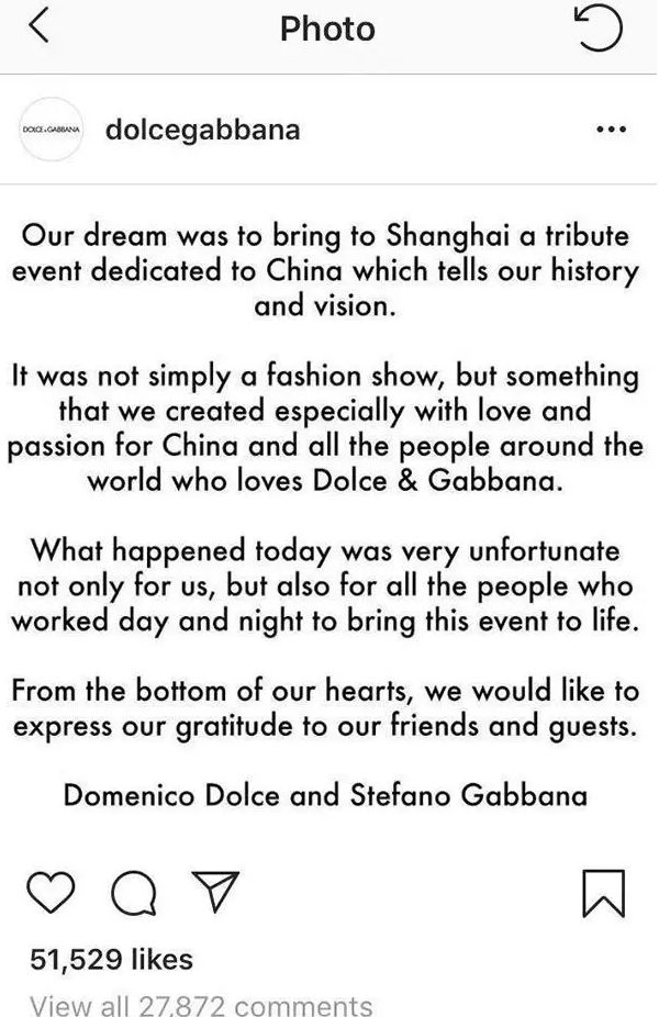 DG再次回应:大秀取消是你们的不幸,就是坚决不道歉!
