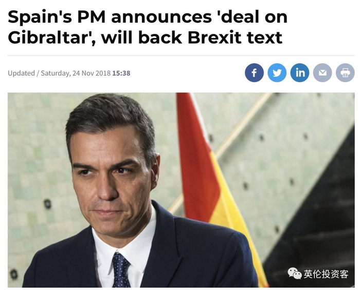 在今天的表决之前,英国在直布罗陀上做出关键让步,西班牙、欧盟、英国三方在最后一刻就直布罗陀问题达致协议。