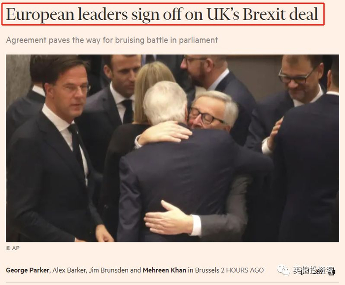 金融时报:欧洲领导人终于签署英国脱欧协议