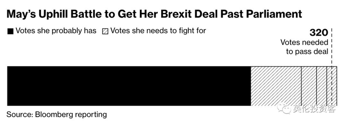 对此,我们可以参考彭博的预测,黑色是梅姨目前可能拥有的票数,而剩下的是她需要争取的票数去通过议会投票公决,一共需要的票数是320张。
