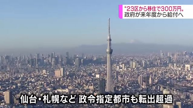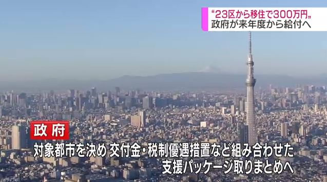 明年起 从东京23区搬出去的人将获最高300万日元补助