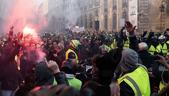 在首都巴黎,喊着“马克龙,我们来了!”的愤怒人群试图靠近总统府爱丽舍宫。尽管最终被防暴警察驱散,但直到深夜仍有400余名抗议者留在市中心的协和广场迟迟不肯离去。