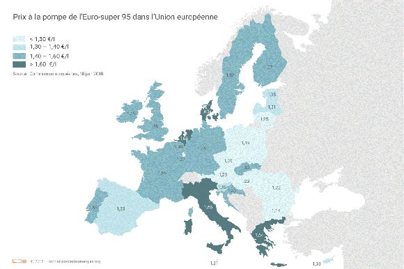 令“黄马甲”们愤怒不已的罪魁祸首正是节节攀升的油价。目前法国的柴油和汽油价格已经达到了每升1.46欧元(约合人民币11.55元)和1.55欧元(约合人民币12.26元),相比去年上涨超过20%,显著高于欧盟均价1.38欧元以及1.39欧元。此外,相比于近邻德国全境内相对统一的油价,法国各地的油价差异巨大。例如在南法的戛纳和北部的里尔市中心,柴油和(98号)汽油价格超过了1.5欧元以及1.6欧元。而在最昂贵的巴黎中心,甚至出现了1.89欧的柴油和1.99欧的汽油。