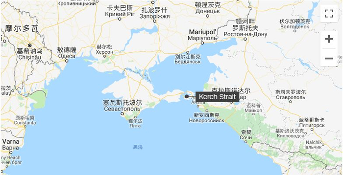 如上图,黑点处就是事件发生的位置,位于克里米亚与俄罗斯本土中间的刻赤海峡。克里米亚,本属于乌克兰的领土,由于乌克兰在美国的操控下爆发了街头革命推翻了亲俄的亚努科维奇政权,俄罗斯为了自保,借克里米亚俄罗斯族人口多的优势,促使克里米亚独立并加入了俄罗斯,自此克里米亚变成了俄罗斯的领土。对此,乌克兰当然非常不满,所以也不会承认克里米亚属于俄罗斯。