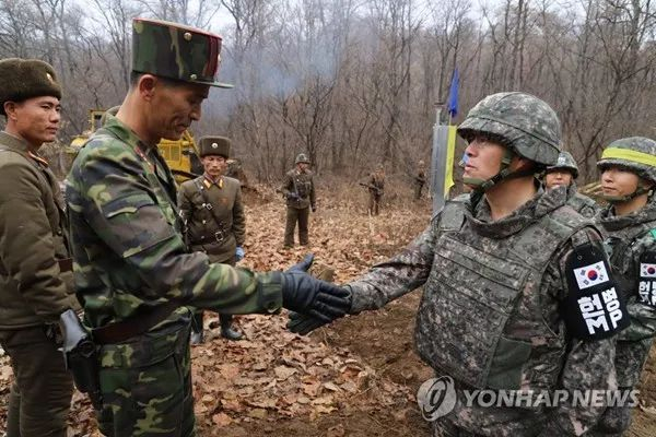 22日,双方在非军事区(DMZ)江原道铁原郡箭头高地的战术道路实现连通,参与施工的双方官兵彼此握手致意并交流施工情况。韩国国防部称,这是1953年停战协定签署后,在半岛正中央地区首次开通连贯韩朝的道路,具有重大意义。