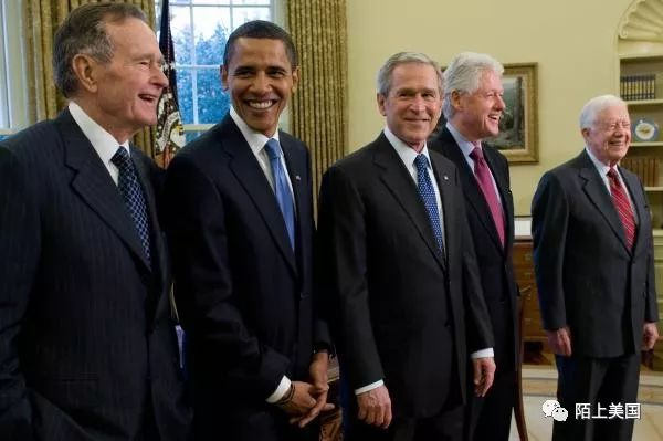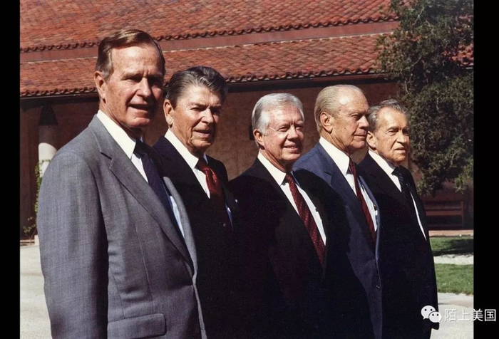 左到右,老布什,里根,卡特,福特,尼克松