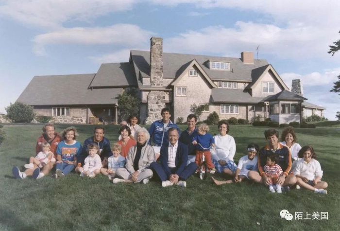 1986年,布什家庭在缅因的房子前 来自newsweek