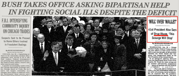 1988年,老布什当选第41届美国总统。在他宣誓就职的那天,当时《纽约时报》的报道:
