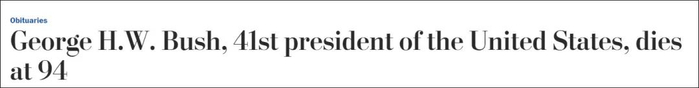 美国《华盛顿邮报》12月1日消息,美国第51届第41任总统乔治·赫伯特·沃克·布什逝世,享年94岁。