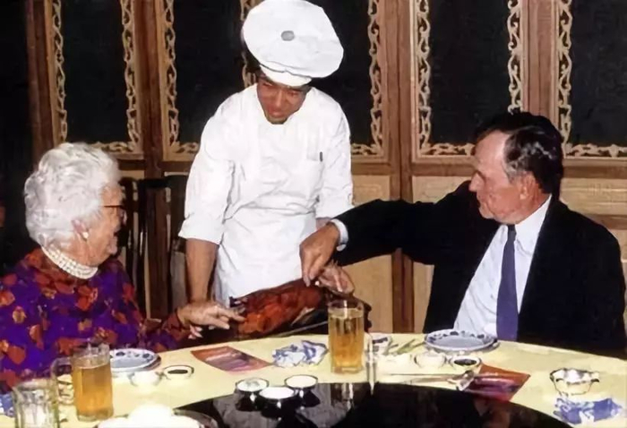 回到美国后的老布什对于中国美食依然念念不忘,北京烤鸭则是他的最爱。在小布什的总统任内,两代布什总统与家人时常会到华盛顿附近的一家北京饭店打打牙祭,而北京烤鸭则是每顿必点。