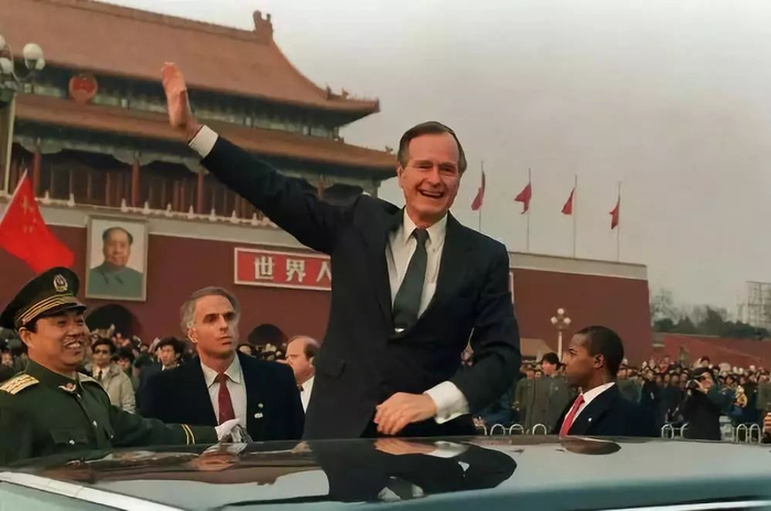 不仅如此,在担任总统一个月后的1989年2月,老布什对中国进行工作访问,成为自20世纪70年代以来首位就职不久即访华的美国总统。