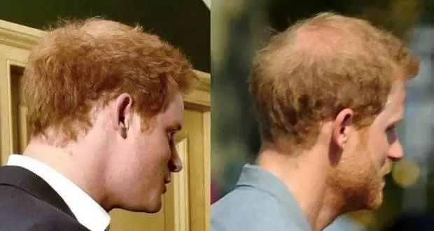 本来哈里一直被人跟哥哥威廉王子的头发比较,还有人夸他头发多来着。