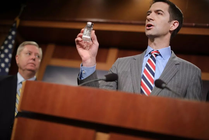 △ 今年3月22日,共和党参议院汤姆·科顿(Tom Cotton)在国会展示可使上千人致死的芬太尼剂量
