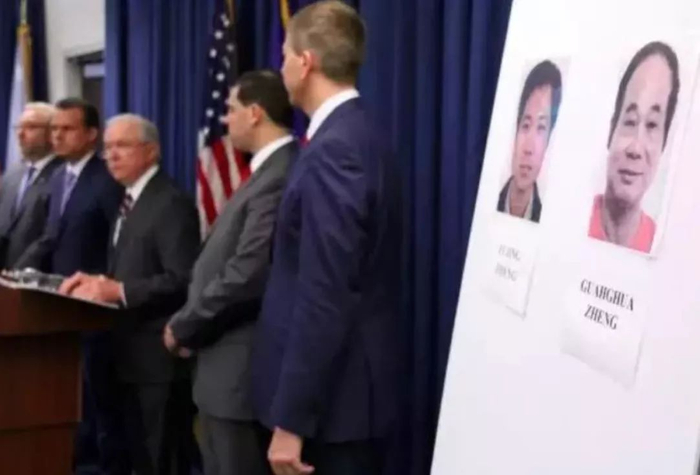 △ 美国前司法部部长塞申斯在新闻发布会展示两名中国贩毒嫌疑人照片 来源:网络