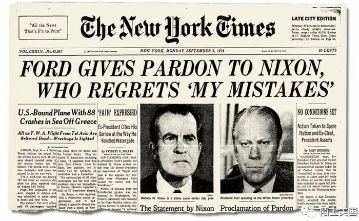 读了信的第二天,尼克松向全国宣布辞职,困扰美国四年之久的水门危机,正式结束。