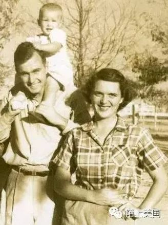 老布什和芭芭拉与他们的孩子小布什和罗宾 1950年(布什总统图书馆和博物馆视听档案馆)来自heavy.com