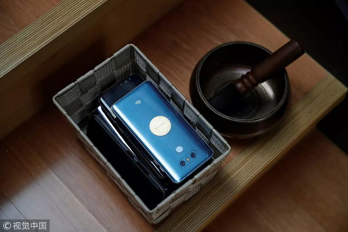 2018年11月10日,韩国洪川郡,28岁的初创公司项目经理Park Hye-ri将她的手机放在牢房外。