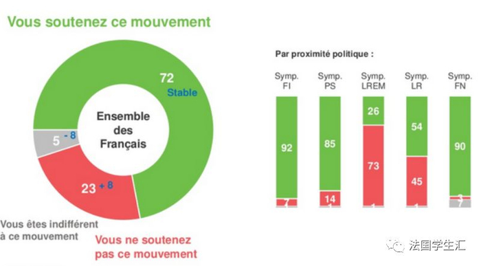 高达72%的法国人是支持游行的