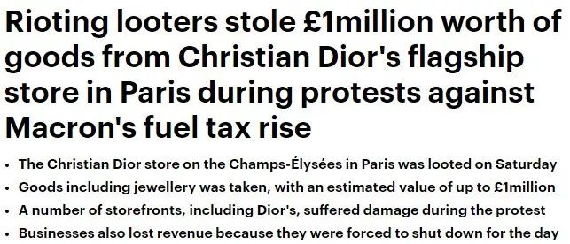 不过,对最近前往巴黎的朋友,我一定要写篇文章提醒一下:黄背心暴力抗议持续不断,香街不少店铺已经躺枪,小心!