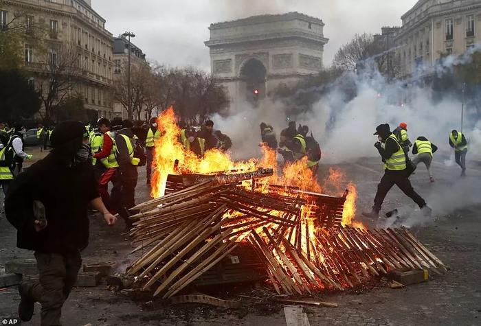 就在上周末,抗议彻底失控,巴黎19个地铁站关闭。巴黎当地时间周六,抗议者在凯旋门和香榭丽舍大街与警察发生对峙,冲突不断,场面不由得让人想起了多年前的英国街头暴动。