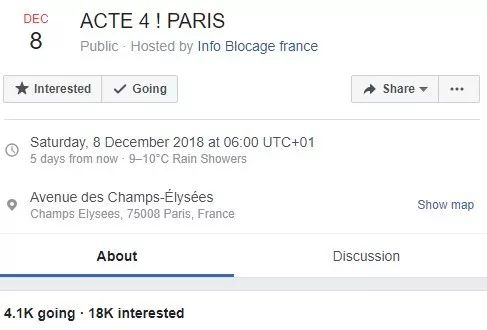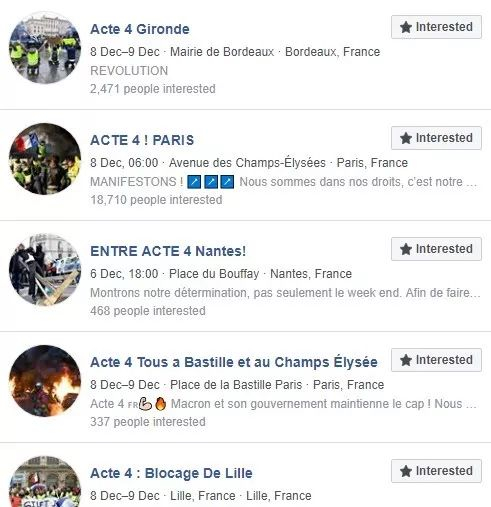 巴黎,南特,香街,巴士底。。。这一个个来势汹汹的“黄背心”运动贴,让人不寒而栗。光是巴黎这一站,脸书上就有4000人表示“要参与”,另有1.8万人表示“感兴趣”。。。
