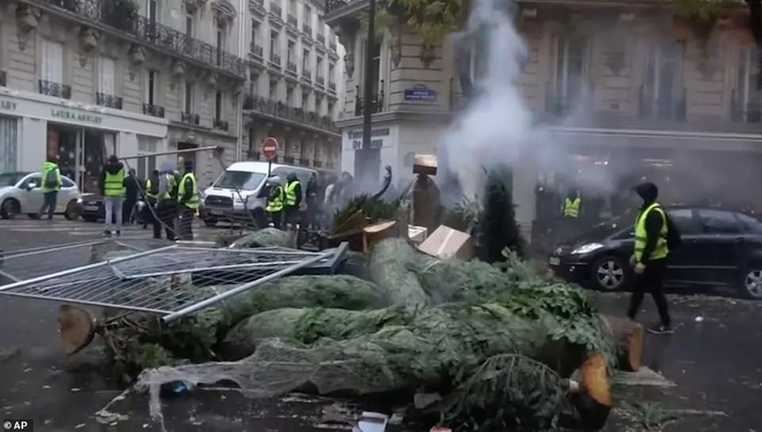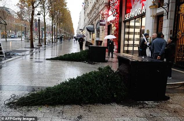 巴黎街头的圣诞树也成了攻击目标,一棵棵被砍倒