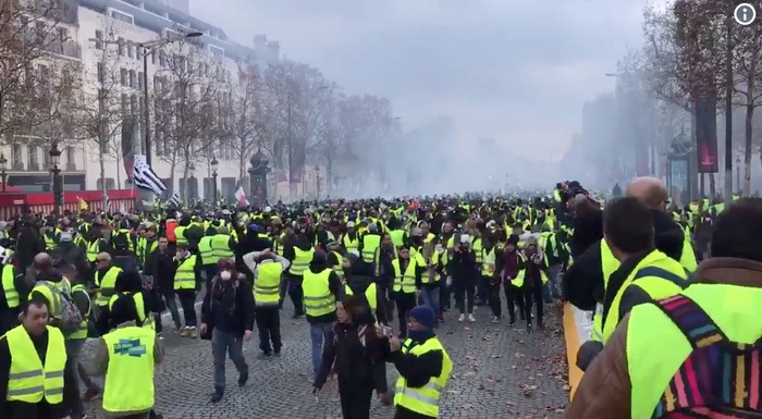 11月17日,对马克龙政府不满的“黄背心”抗议者开始在全法各地集会,并展开暴力行动。很快,这场抗议就把全法“黄”了个遍,扩散速度相当快。