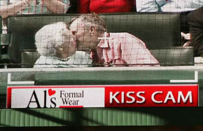 晚年两人去看体育比赛,每次被kiss cam抓拍到,老布什都会大方地去亲芭芭拉。
